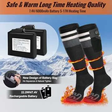 Show more Introducing the Latitop 2024 Upgraded Heated Socks, designed for those who refuse to let the cold dictate their outdoor adventures. Tailored for both men and women, these high-tech socks integrate advanced heating technology with user-friendly features for unparalleled warmth. Whether you enjoy skiing, hiking, or simply need cozy comfort during chilly nights, these heated socks are your ideal accessory. With a powerful 7.4V rechargeable battery, they can deliver heat for up to 17 hours, keeping your feet toasty warm throughout the day.