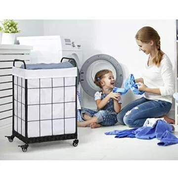 Show more Experience the ultimate in laundry convenience with our Laundry Hamper with Heavy Duty Rolling Lockable Wheels. Designed for modern living, this durable laundry basket boasts a generous capacity and a sleek, stylish look that fits seamlessly into any home decor. Say goodbye to lugging heavy clothes baskets; with its customizable detachable liner bag and robust design, this hamper is here to change the way you handle laundry. The exceptional 36.5 Gallons/100L capacity ensures it can accommodate hefty loads, whether it's clothing, toys, or linens. Easy to assemble and featuring wheels that lock in place, this hamper is the perfect blend of practicality and elegance.