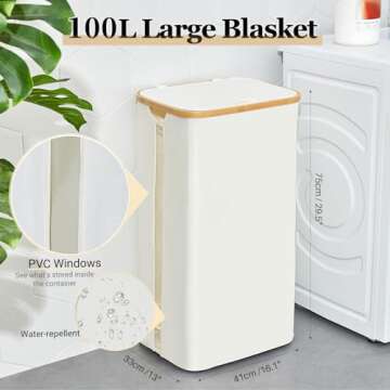 Show more Experience the ultimate solution for laundry organization with the JVIBI Bamboo & Canvas Dirty Clothes Hamper! This stylish and practical laundry basket is designed to transform your laundry routine into an effortless experience. Made with premium materials like cotton/polyester and featuring a robust bamboo frame, it offers both durability and elegance that fits seamlessly into any room decor.