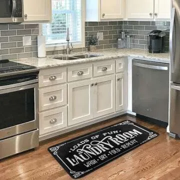 Laundry Room Rug Washing Machine Room Farmhouse Runner Rugs Non Skid Kitchen Floor Mats Bathroom Laundry Decor Carpet Black 39x20in