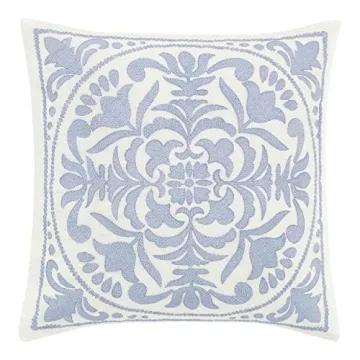 The captivating blue embroidered medallion design adds a touch of sophistication, making it an excellent choice for any room, whether it be a cozy living room, a chic bedroom, or even a stylish office. Measuring 18 inches by 18 inches, this throw pillow strikes the perfect balance between comfort and style, fitting seamlessly into your interior décor.