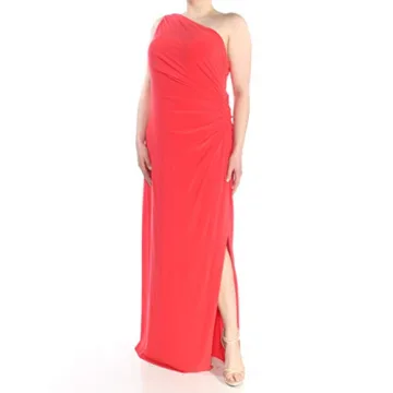 Lauren by Ralph Lauren Women's One Shoulder Brooch Gown - Elegance Redefined in Orange