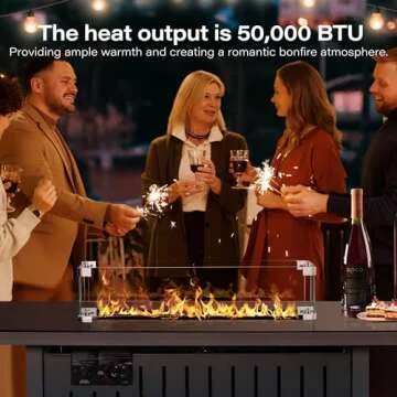 LAUSAINT HOME 43" Outdoor Fire Pit Table, 50,000 BTU Auto-Ignition Propane Gas Firepits with Glass Wind Guard, Fire Glass and Lid for Outside Patio