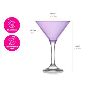 LAV Multicolored Martini Glasses Set of 6 - Colorful Martini Cocktail Glass Set - Party Drinkware for Elegant Cocktails - Dishwasher Safe