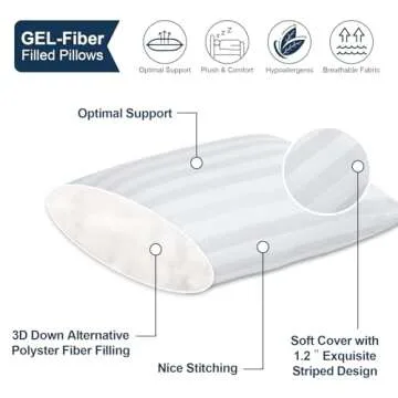 LAVANCE Pillows Queen Size Set of 2 Hotel Collection Pillows 3D Down Alternative Fiber Filling Soft Bed Pillows for Back, Stomach or Side Sleepers-1.2" White Striped, 20"x28"
