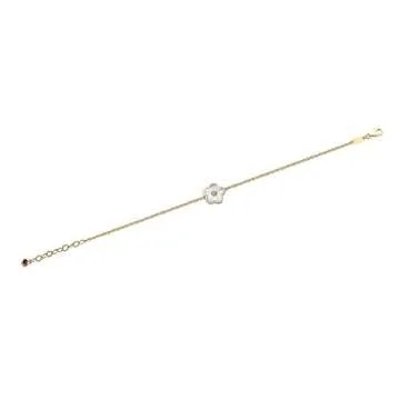 Lavari Jewelers Mother of Pearl Flower Bracelet for Women in 925 Sterling Silver with Yellow Gold Plating Adjustable Lobster Claw