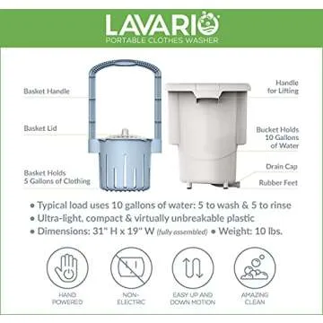 Lavario Portable Clothes Washer (Manual Non-Electric Portable Washing Machine for Camping, Apartments, RV’s, Delicates) (Blue & White) (Made in the USA)