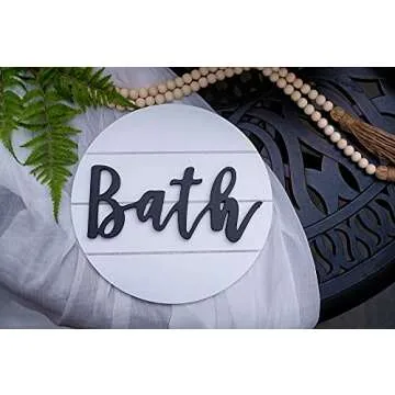 Show moreIntroducing the Lavender Inspired Rustic 3D Bath Sign, a stunning addition to your bathroom decor that perfectly blends modern farmhouse charm with elegance. This 10-inch round sign features exquisite 3D word cutouts and a captivating shiplap design that stands as a visual centerpiece in any bathroom setting. Crafted with a beautiful font, this sign captures the essence of sophistication and warmth, ensuring it complements a variety of decor styles timelessly. Whether you're redecorating your home or looking to add a personalized touch, this sign is your go-to choice.