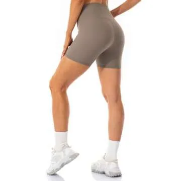 Lavento Women's All Day Soft Biker Shorts 5 Inch - High Waisted Workout Gym Running Yoga Shorts (Light Taupe, 4)