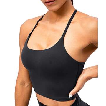 Lavento Women's Longline Sports Bras Y-Back Yoga Crop Tank Top with Built in Bra (Black, 8)