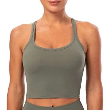 Lavento Women's Longline Sports Bras Yoga Racerback Crop Top with Built in Bra (Silky Olive Green, 10)