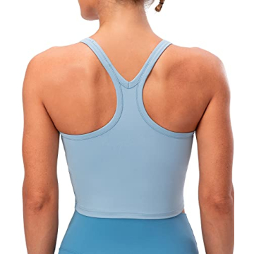 Lavento Women's Longline Sports Bras Yoga Racerback Crop Top with Built in Bra (Silky Serenity Blue, 4)