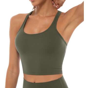 Lavento Women's Racerback Sports Bras Yoga Crop Top with Built in Bra (Brushed Olive Green, 10)