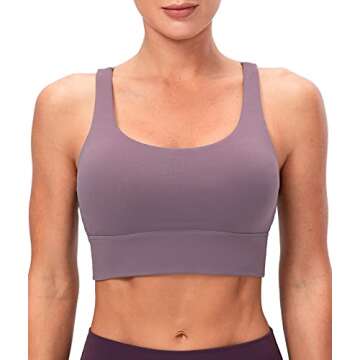 Lavento Women's Strappy Sports Bra Long Line Medium Support Energy Workout Training Top (2026 Mauve Taupe, Large)