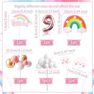 LaVenty Pink On Cloud 9 Cake Decoration On Cloud 9 Birthday Cake Topper 9 Birthday Cake Decoration On Cloud 9 Party Supplies Cloud Cake Toppers
