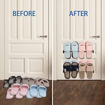 Lavezee Wall Mounted Shoe Rack Organizer 8 Pairs Sandals Slippers, Set of 2 Black Metal Shoe Storage Holder for Wall, Entryway, Bathroom