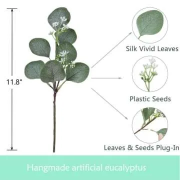 Lavora Zone 20 Pcs Artificial Seeded Eucalyptus Leaves Stems Bulk Silver Dollar Leaves Plant Green 11.8" Tall Artificial Greenery Holiday Greens Wedding