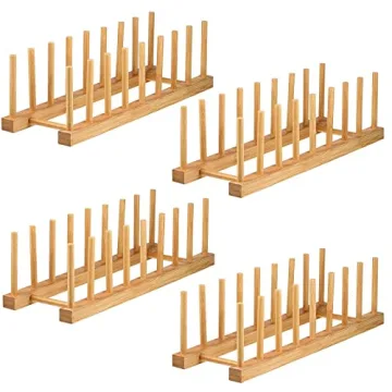 Lawei 4 Pack Bamboo Dish Drying Rack - Stylish Organizer for Plates and Lids