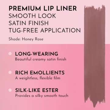 Show moreIntroducing the Lawless Women's Forget the Filler Definer Liner in the exquisite shade Honey Rose. This revolutionary lip liner is a must-have for beauty enthusiasts who want to define, line, shape, and contour their lips effortlessly. Its creamy, comfortable formula glides on smoothly, providing a touch of luxury with every application. The perfect blend of rich emollients ensures a weightless and flexible feel, making it the ideal choice for all-day wear without compromising on comfort. With its beautiful creamy satin finish, the Forget The Filler Definer Liner is every lipstick lover’s dream, delivering a flawless look that lasts. Experience the power of precision with this exceptional product, specially crafted to enhance your pout and elevate your makeup game.