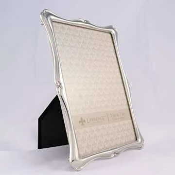 Show moreIntroduce a touch of sophistication to your home decor with the Lawrence Frames 710257 Silver Metal Romance Picture Frame. Crafted meticulously from heavyweight silver metal, this elegant 5 by 7-inch frame is designed to beautifully display your cherished memories. Its contemporary silhouette boasts a beautifully detailed design that complements any decor style, from modern minimalism to classic elegance. The high-quality black velvet backing not only adds a luxurious touch but also ensures that your photos are securely held in place while enhancing the overall aesthetic. With its wipe-clean surface, this frame is not only stylish but also practical.