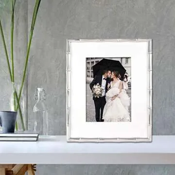 Show moreCelebrate your cherished memories in style with the Lawrence Frames Bamboo Design Metal Frame. This exquisite frame seamlessly blends contemporary elegance with a touch of nature, boasting a beautifully detailed bamboo design crafted in premium silver metal. Measuring 8x10 inches, it's designed to perfectly display your favorite 5x7-inch photos with its included matting, making it not just a frame but a true centerpiece for your home decor.