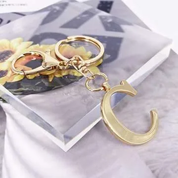 LAXPICOL Gold Keychain Letter C Keychains for Women Men Bag Charms Purse Charms For Handbags Metal Alphabet Initial Letter Key Ring Keychain