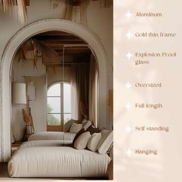 LAY Look at You Oversized Arched Mirror 70x39 - Gold Thin Frame, Explosion-Proof Glass, Full-Length