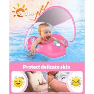 LAYCOL Baby Swimming Float Inflatable Baby Pool Float Ring with Sun Protection Canopy,add Tail no flip Over for Age of 3-36 Months (Pink, S)
