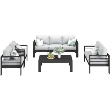 Show more Experience the ultimate in outdoor leisure with our exquisite patio furniture set, designed for both style and comfort. Crafted by a renowned brand specializing in outdoor living, this set embodies durability with its all-weather aluminum frames, which are not only water-resistant but also rust-proof and UV-resistant. Enjoy peace of mind knowing your furniture can withstand the elements all year round.