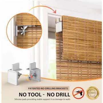 Show more Introducing the luxurious Natural Bamboo Cordless Blinds, a sleek and stylish addition to any home or office that effortlessly enhances the ambiance while providing functionality. Made from 100% natural bamboo, these blinds not only filter sunlight gently but also add an eco-friendly touch to your space. With a unique no-drill design, installation is a breeze—take just 30 seconds to install without the need for tools, making it perfect for renters, landlords, and homeowners alike.