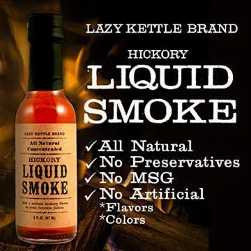 Lazy Kettle Brand All Natural Liquid Smoke | Perfect for Flavoring Meat | Hickory | Used to Flavor Beef Jerky, Steak, Fish, Cheese, Sauces and More | 5 Oz Each