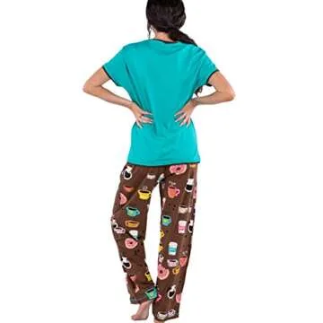 Lazy One Women's Pajama Set - Short Sleeves, Coffee & Donut Prints, Relaxed Fit