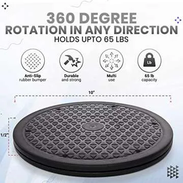Show moreIntroducing the ultimate solution for organizing and accessing your essential items with ease—the Lazy Susan Turntable Organizer by RamPro. This versatile turntable is not just an ordinary organizer; it's designed to enhance your workspace, kitchen, or any room in your home with its remarkable functionality. Crafted from durable, heavy-duty materials, this lazy Susan holds up to 65 lbs, making it perfect for everything from office supplies to kitchen essentials.