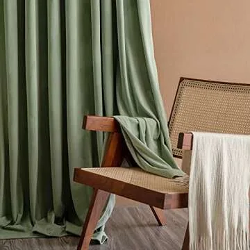 Lazzzy Velvet Blackout Curtains Green Thermal Insulated Drapes for Bedroom Living Room Darkening 108 Inches Extra Long Window Treatments Super Soft Luxury Rod Pocket 2 Panels Sage Green