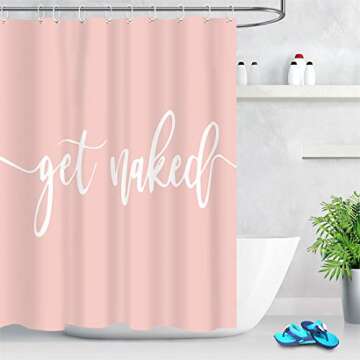 LB Get Naked Shower Curtain Funny Quotes Words Pink Shower Curtains for Bathroom with Hooks 60x72 inch Waterproof Polyester Fabric Bathroom Decorations