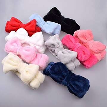Lbaby Spa Headband Coral Fleece Bowknot Hairlace Wash Face Turban Headwear Women Elastic Fluffy Hair Band for Washing Face Shower Sports Makeup