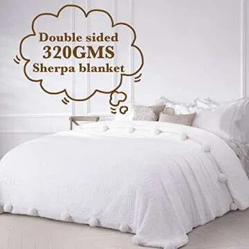 Ideal for versatile scenarios, our Sherpa fleece blanket is the ultimate companion whether you’re lounging indoors or enjoying outdoor picnics. Its thickness offers warmth and a decorative touch, effortlessly beautifying your couch or bed while enhancing your living space. Designed with unique pom balls on the edges, this blanket seamlessly blends playfulness with style, making it a charming addition to any decor.