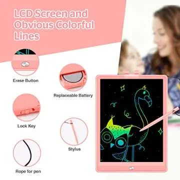 Show more Unleash your child's creativity with the most innovative drawing pad on the market! This colorful, electronic drawing pad is expertly designed for young artists, utilizing LCD pressure-sensitive technology that guarantees no radiation, no glare, and absolutely no blue light. This means kids can enjoy long hours of doodling without any harm to their precious eyesight. The vibrant colors and smooth display are perfect for sparking imagination and helping children transform their vivid ideas into dazzling drawings. Just imagine the joy of watching their creativity bloom!