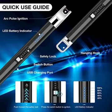 LcFun Candle Lighters 2 Pack Electric Lighter USB Rechargeable Long Lighter with Safety Lock and LED Battery Display Plasma Arc Lighters for Candles, Fireworks, BBQ (2 Pack Black)