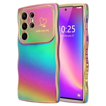 Show moreIntroducing the latest in stylish phone protection: a beautifully crafted love heart wavy shape case designed specifically for the Samsung Galaxy S24 Ultra 5G. This case is not just a protective covering but a statement piece that combines elegance and functionality. Each case is produced with a unique manufacturing process, giving you a rainbow effect that varies slightly from piece to piece, which highlights its one-of-a-kind nature. Constructed from high-quality soft TPU silicone, this case is exceptionally lightweight yet offers outstanding durability, ensuring your device is shielded from drops, scratches, and bumps.