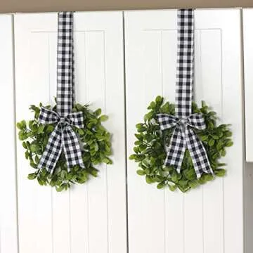 LCI Set of 2 Faux Kitchen Cabinet Wreaths 11" W x 21" L Each (Black & White Plaid)
