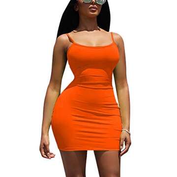 LCNBA Sexy Spaghetti Strap Tank Dress Basic Backless Bodycon Club Party Mini Dress M Orange