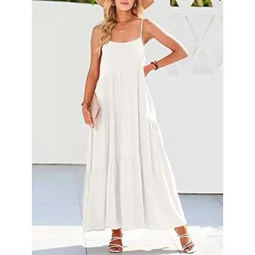 Show moreIntroducing the LCRRRN Women's Flowy Summer Dresses 2025, a stunning blend of comfort, style, and versatility that is perfect for the warm months ahead. This casual long sleeveless spaghetti strap dress features an asymmetric tiered design that enhances its flowy swing hem, ensuring you look effortlessly chic at any event. Made from high-quality 100% rayon, the fabric is not only soft but also breathable, making it an ideal choice for hot summer days. With adjustable spaghetti straps, you can customize the fit to your liking, adding both style and personal flair to your outfit. Its loose fit strikes the right balance between stylish and casual, allowing you to seamlessly transition from a day at the beach to an evening out.