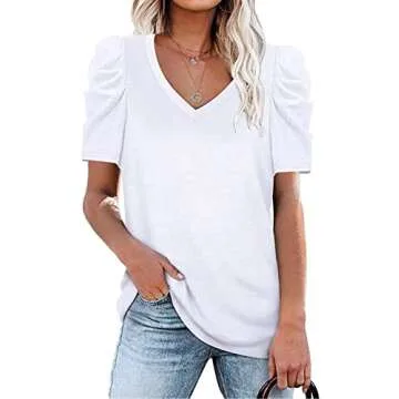 LCXWFE Womens Casual V Neck T Shirt Puff Sleeve Tops Ruched Elegant Summer Shirts