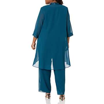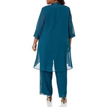 Show moreStep into elegance with the Le Bos Women's Plus Size FORTUNY Trim Long Jacket Pant Set. Crafted for the modern woman who values versatility and style, this stunning outfit features a long jacket paired with tailored pants, elegantly designed in a rich teal color that flatters all skin tones. Whether you’re attending a wedding, a dinner party, or a church service, this outfit transitions smoothly from day to night, making it a perfect addition to your wardrobe. The breathable fabric ensures comfort, while the chic silhouette enhances your curves beautifully, making you feel confident and poised at any event.