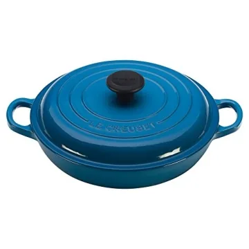 Show moreIntroducing the Le Creuset Enameled Cast Iron Signature Braiser in the stunning Marseille color, a culinary masterpiece that promises to revolutionize your cooking experience. With a generous 5-quart capacity, this braiser is perfect for preparing everything from sumptuous stews and roasts to delightful casseroles. The standout feature of this braiser is its exceptional heat distribution and retention, allowing you to achieve perfectly cooked meals every time. The advanced sand-colored interior enamel not only enhances durability but also ensures effortless cleaning, making this piece a delightful addition to your kitchen.