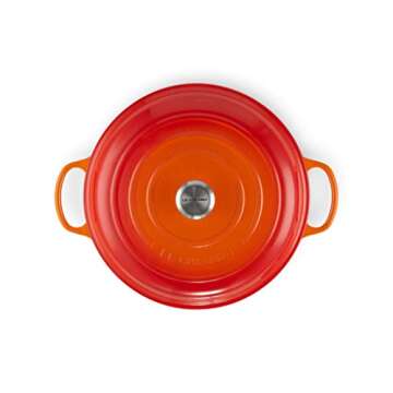 Show moreElevate your cooking experience with the Le Creuset Enameled Cast Iron Signature Braiser, a stunning 5-quart masterpiece in a vibrant flame hue. This iconic braiser is expertly crafted from durable enameled cast iron, ensuring unparalleled heat distribution and retention for perfectly cooked meals every time. Ready to use right out of the box, it eliminates the hassle of seasoning and is designed to withstand the intricacies of everyday cooking. The beautiful enamel finish is not only visually appealing but also provides a tough, easy-to-clean surface that resists dulling, staining, chipping, and cracking.