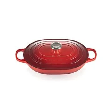 Show moreIntroducing the Le Creuset Enameled Cast Iron Signature Oval Casserole, 3.75 qt., in a stunning Cerise hue. This exquisite casserole is not just an ordinary cooking vessel; it combines classic charm with modern functionality. Crafted from premium cast iron, this casserole ensures superior heat distribution and retention, making it perfect for all your cooking needs, from slow-cooked stews to delightful casseroles. The vibrant enamel exterior is not only visually appealing but also provides exceptional durability and resistance against wear. Whether you are preparing a family meal or entertaining guests, this casserole will deliver incredible performance while adding elegance to your kitchen.