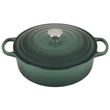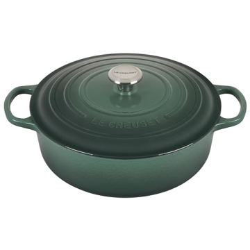Show moreIntroducing the Le Creuset Enameled Cast Iron Signature Round Wide Dutch Oven in a stunning Artichaut color, a piece that not only epitomizes culinary excellence but is also an aesthetically pleasing addition to any kitchen. This 6.75-quart Dutch oven is designed for superior heat distribution and retention, which allows you to cook a variety of dishes flawlessly—from savory stews to delicious baked casseroles. Its light-colored smooth interior enamel lets you effortlessly monitor your cooking progress, ensuring delightful results every time.