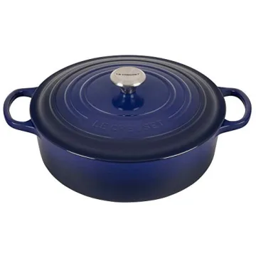 Show moreIntroducing a culinary masterpiece that elevates your cooking experience—the Le Creuset Enameled Cast Iron Signature Round Wide Dutch Oven in stunning Indigo. This exceptional piece of cookware seamlessly marries style with functionality, making it the perfect gift for any cooking enthusiast. With a generous capacity of 6.75 quarts, you'll love its ability to accommodate large meals, seamlessly transitioning from stovetop to oven and even to the table. The pot's robust construction ensures superior heat retention and even cooking, making every dish not only delicious but also expertly prepared. The wider design of this Dutch oven is specifically tailored for easier stirring, ensuring that no ingredient is left behind while cooking.